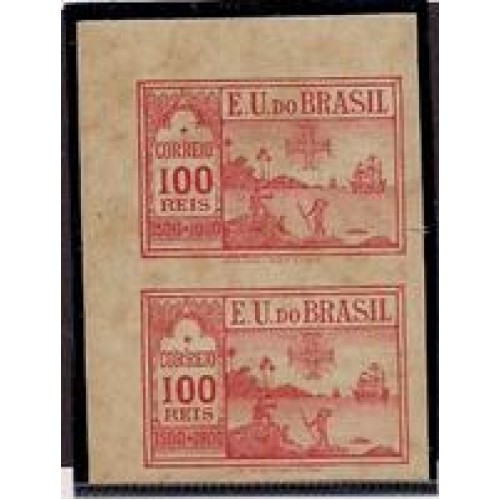 C-1SD-100Rs 4o Cent. do Descobrimento em par sem denteação, canto de folha