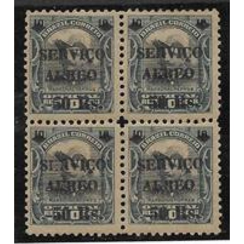 001A5-50/10Rs em quadra com a variedade "Sirviço" no selo inferior esquerdo.