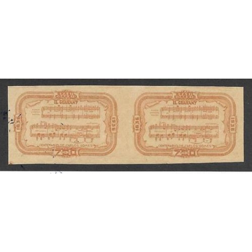Etiquetas: 0109SD-700Rs, Centenário de Carlos Gomes, amarelo, filigrana Armas, em par sem denteação.