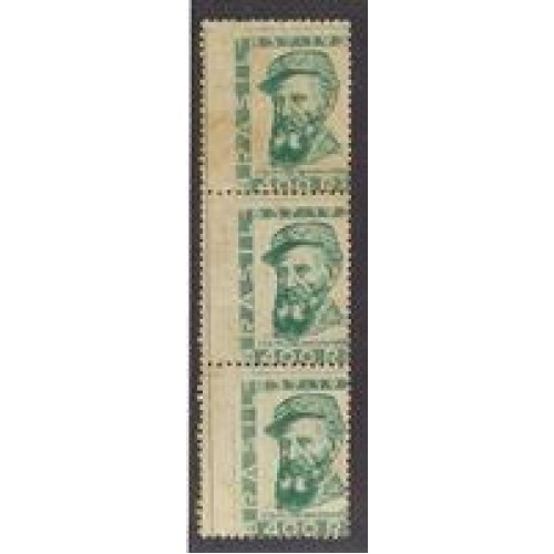 Etiquetas: 0130-Centenário de Couto de Magalhães, tira de 3 selos com denteação deslocada