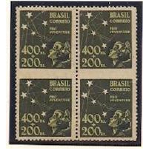 0148- 400Rs+ 200Rs Pro-Juventude em quadra sem denteação horizontal entre os selos