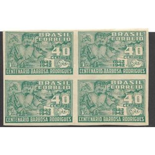 • 0187-Centenário de Barbosa Rodrigues, prova em quadra , papel liso sem filigrana