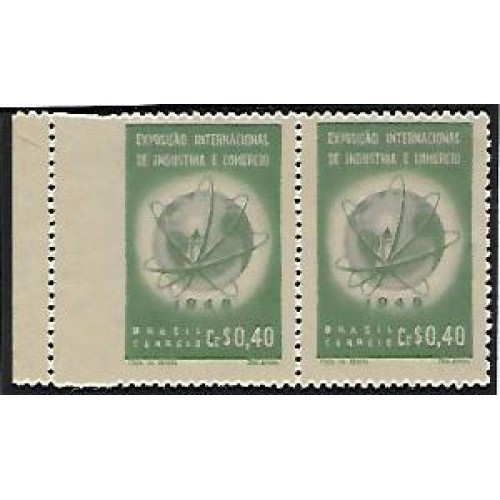 0237-Exposição de Industria e Comercio, par com denteação á esquerda muito deslocada