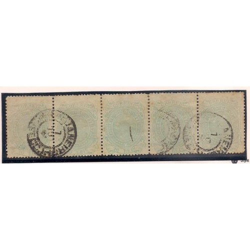 070-20Rs Cruzeiro tira de 5 selos verde azulado usada