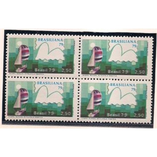 1086-Brasiliana 79 ,CR$2,50 quadra com cores deslocadas