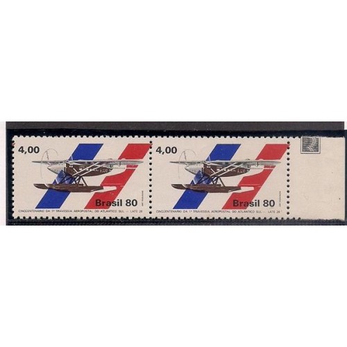 • 1146-50 Anos da Travessia Aeropostal do Atlantico   em par com avião deslocado  á esquerda