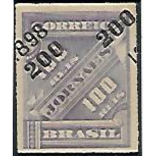 116-200/100Rs, preto sobre violeta escuro, sobrecarga deslocada