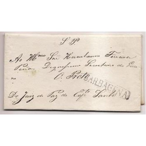 Etiquetas: 1839-Carta para Ouro Preto isenta de porte com cbo de saída "Barbacena" linear com cercadura
