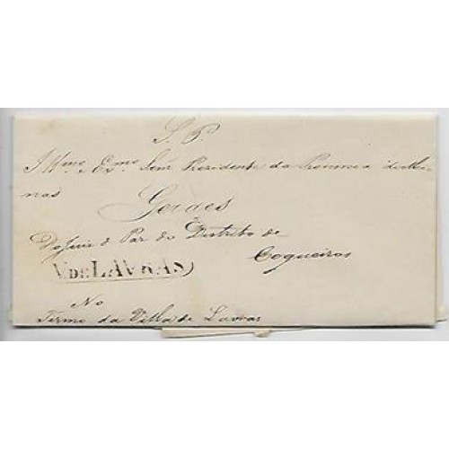 1846-Carta de Lavras para Ouro Preto com cbo de saída "V.de Lavras" linear com cercadura