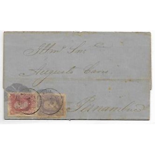 1881-Carta de Aracaju para Pernambuco com 80Rs e 20Rs D.Pedro barba branca, cbo de saída "Aracaju" circular tipo comum.Rara