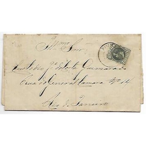 1883-Carta circulada para o Rio de Janeiro com 100Rs D.Pedro cabeça grande (RHM-54) cbo de saída 'Piuma"