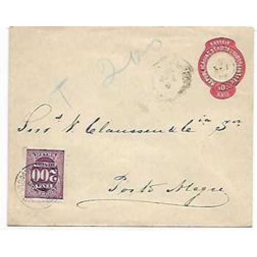 1895-Envelope de 100Rs (EN-39) para Porto Alegre taxado em 200Rs com selo ABN violeta