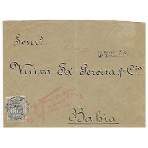 1897-Envelope para a Bahia sem porte na origem , taxado com selo de 200Rs denteado 13.