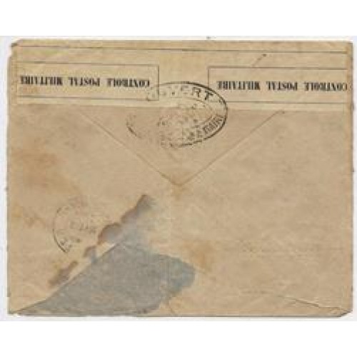 1916-Envelope circulado para a Suíça com 200Rs Próceres, etiqueta e carimbo de censura militar francesas.
