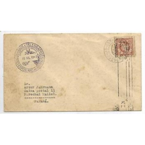 1942-Envelope circulado de S.Paulo para o Paraná, 1 porte nacional de 400Rs com selo do Congresso Brasileiro de Educação.