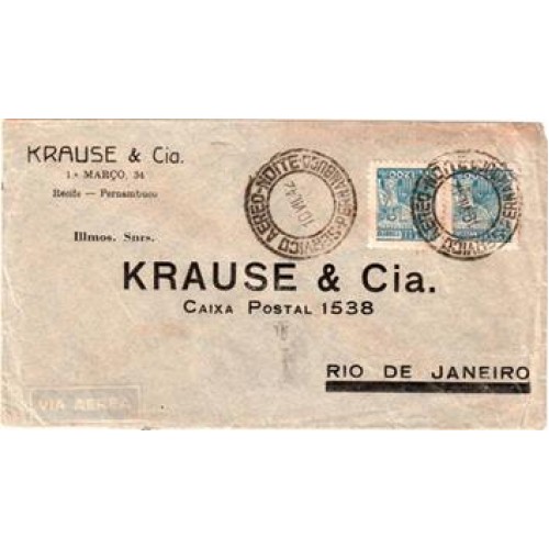 1942-Envelope circulado do Recife para o Rio de Janeiro com carimbo publicitário batido á chegada "Rio The Wonder City- Rio Cidade Esplendor"