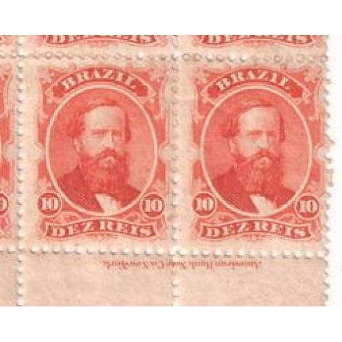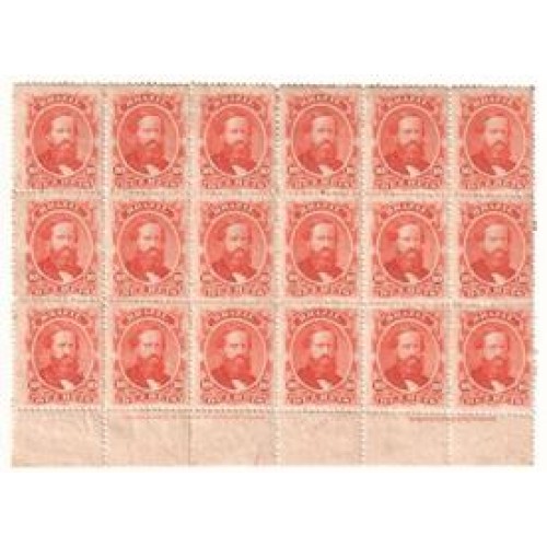 Etiquetas: 23Li-10Rs D.Pedro "Barba Preta", bloco de 18 selos novo com goma, com legendas invertidas e completas em Espanhol e em Inglês