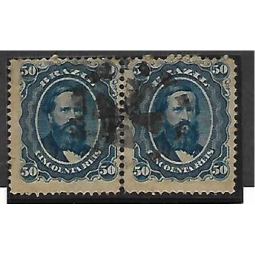 25Fn-50Rs D.Pedro barba preta, par usado em papel fino de 65 micras.
