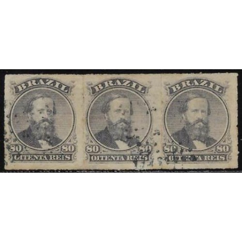 33-80Rs D.Pedro Percê, tira usada de 3 selos.