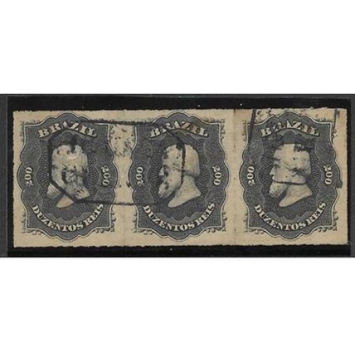 • 35-200Rs D.Pedro "Percê", tira de 3 selos com carimbo "Iguaba Grande"
