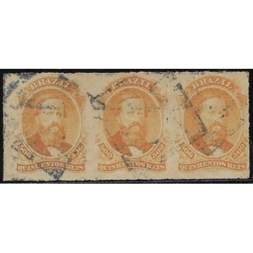 36-500Rs D.Pedro Percê, tira de 3 selos, usada