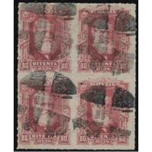 Etiquetas: 40-80Rs D.Pedro Barba Branca, quadra usada. Rara.
