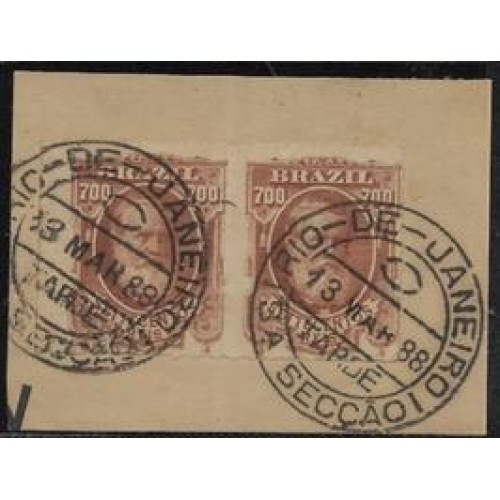 Etiquetas: 45-700Rs D.Pedro Barba Branca, em par usado sobre belo fragmento