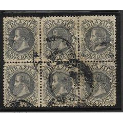 51-10Rs D.Pedro "Cabeça Grande", preto, em bloco de 6 selos, usado.