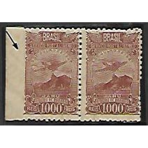 A-030-1000Rs Aeronave Jahú, filigrana "Cruzeiro", par sem denteação á esquerda.Raro