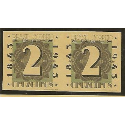 Etiquetas: A-049CSD-Cr2, 00, Cent.do Selo Brasileiro, filigrana vertical, par sem denteação, novo sem goma