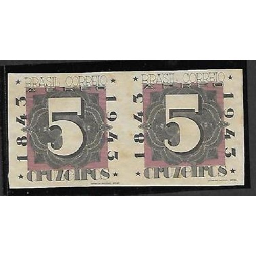 Etiquetas: A-050SD-Cr5, 00, Cent.do Selo Brasileiro, par horizontal sem denteação, novo sem goma