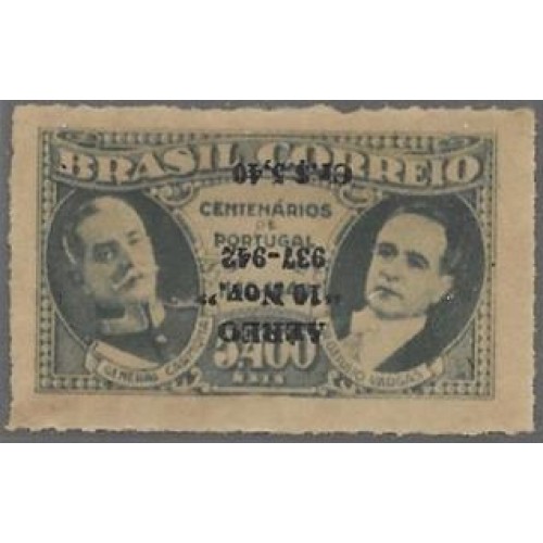 Etiquetas: A045G- Centenario de Portugal, Cr$5, 40/5400Rs com sobrecarga invertida, novo sem goma.