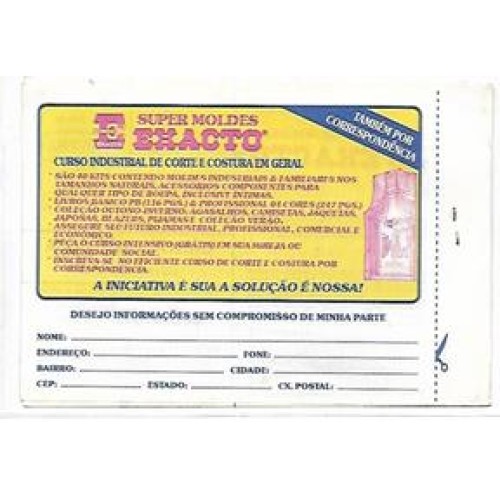 CD-15-Cartela com propaganda "Super Moldes Exato", completa, formato 16 X 11 cm