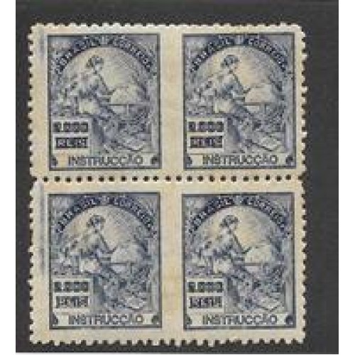 308-2000Rs tipo Instrução, filigrana "Correinho", quadra sem denteação horizontal entre os selos.
