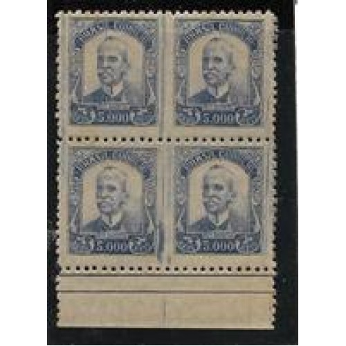 • 309-5000Rs Ruy Barbosa, filigrana "Correinho" em quadra sem denteação vertical