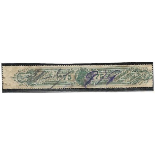 Imposto de Bebidas-234- 75Rs, verde, denteado, emissão de 1903.