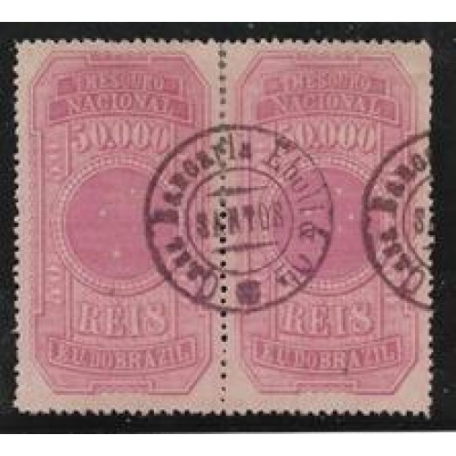 Imposto do Selo-170-50.000Rs carmim, tipo Cruzeiro do Sul, par usado, belo carimbo "Casa Bancaria Eboli & Cia-Santos"
