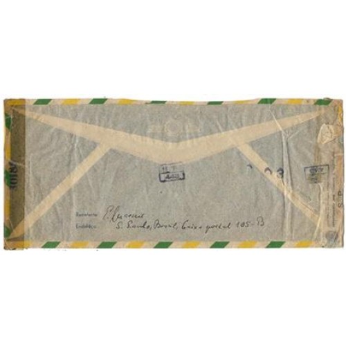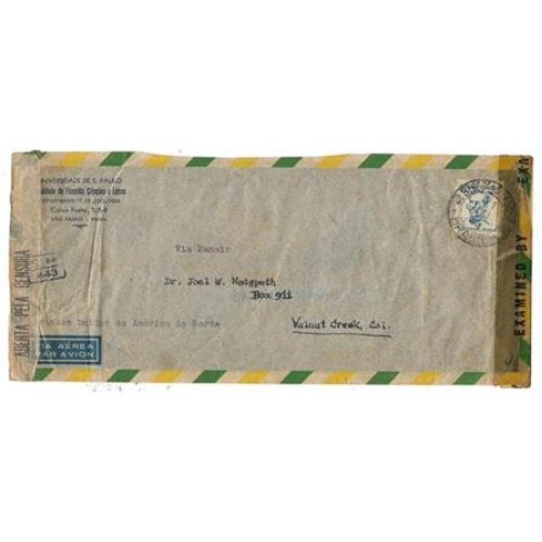 1944-Envelope circulado de São Paulo para os EUA com etiqueta e carimbo de censura "SP-443"