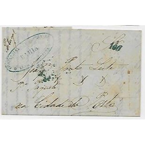 Etiquetas: 1855-Carta para o Porto c/cbo "Companhia de Paquetes a Vapor Luso-Brasileira-Bahia" em azul