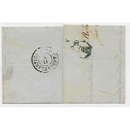 1855-Carta da Bahia para o Porto pelo vapor S.Maria II, c/cbo "Companhia de Paquetes a Vapor Luso-Brasileira-Bahia" em azul, porte maritimo de 160Rs de acordo com o 3 porte para vapores não subsidiados, cbo "P.Transatlantico" em preto batido no verso