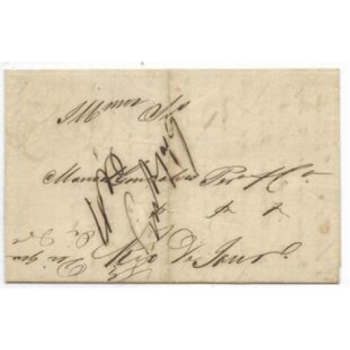 1857-Carta de Baependi para o Rio de Janeiro com porte lançado á mão de 60Rs carimbo de saída "Baependi" linear com cercadura, batido em amarelo
