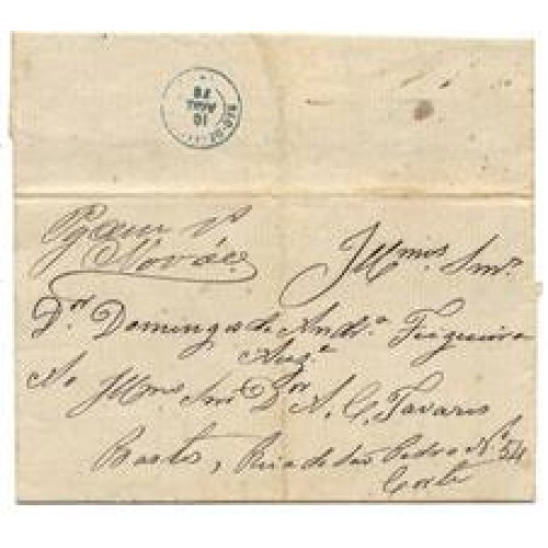 • 1878-Carta circulada de Mar D'Hespanha para o Rio de janeiro com porte de 100Rs lançado á mão e assinado pelo agente Novaes