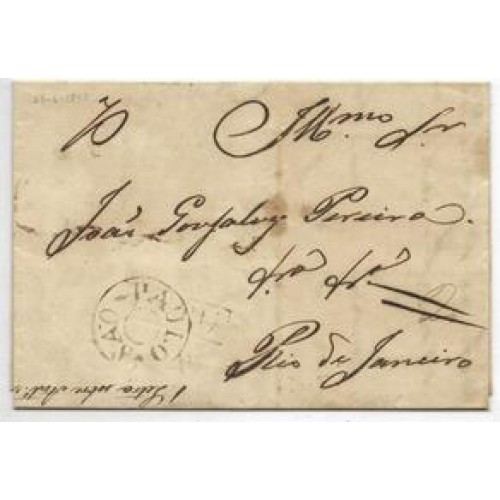 • 1840-Carta circulada de Itu para o Rio de Janeiro com carimbo de saída "Itu" com cercadura reta e de transito "S.Paulo" circular.