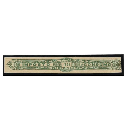 Imposto de Bebidas-208- 40Rs, verde , sem filigrana, emissão de 1900.
