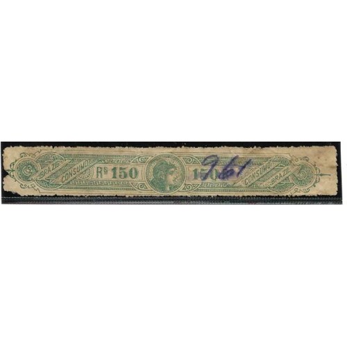 Imposto de Bebidas-237- 150Rs, verde, denteado, emissão de 1903.
