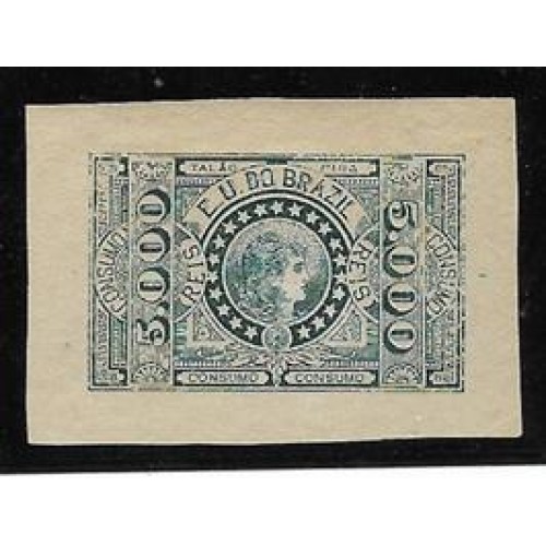 Imposto de Tecidos-023- 5.000Rs , prova em azul papel cartão, da emissão de 1906