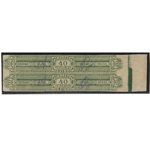 Imposto do Vinho-37-40Rs verde, em par,filigrana " Casa da Moeda",