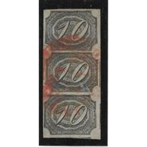 04-10Rs Inclinado, em tira de 3 usada, boas margens.