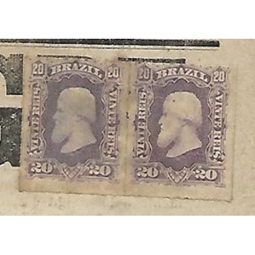 1883-Jornal circulado de Porto Alegre a Pelotas com par de 20Rs D.Pedro barba preta