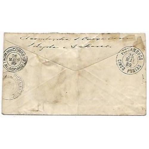 Etiquetas: 1889-envelope de 100rs registrado de cinco pontas para maceio com selo adicional de 300rs tipo cruzeiro do sul, 4602, casa da moeda, periodo da upu